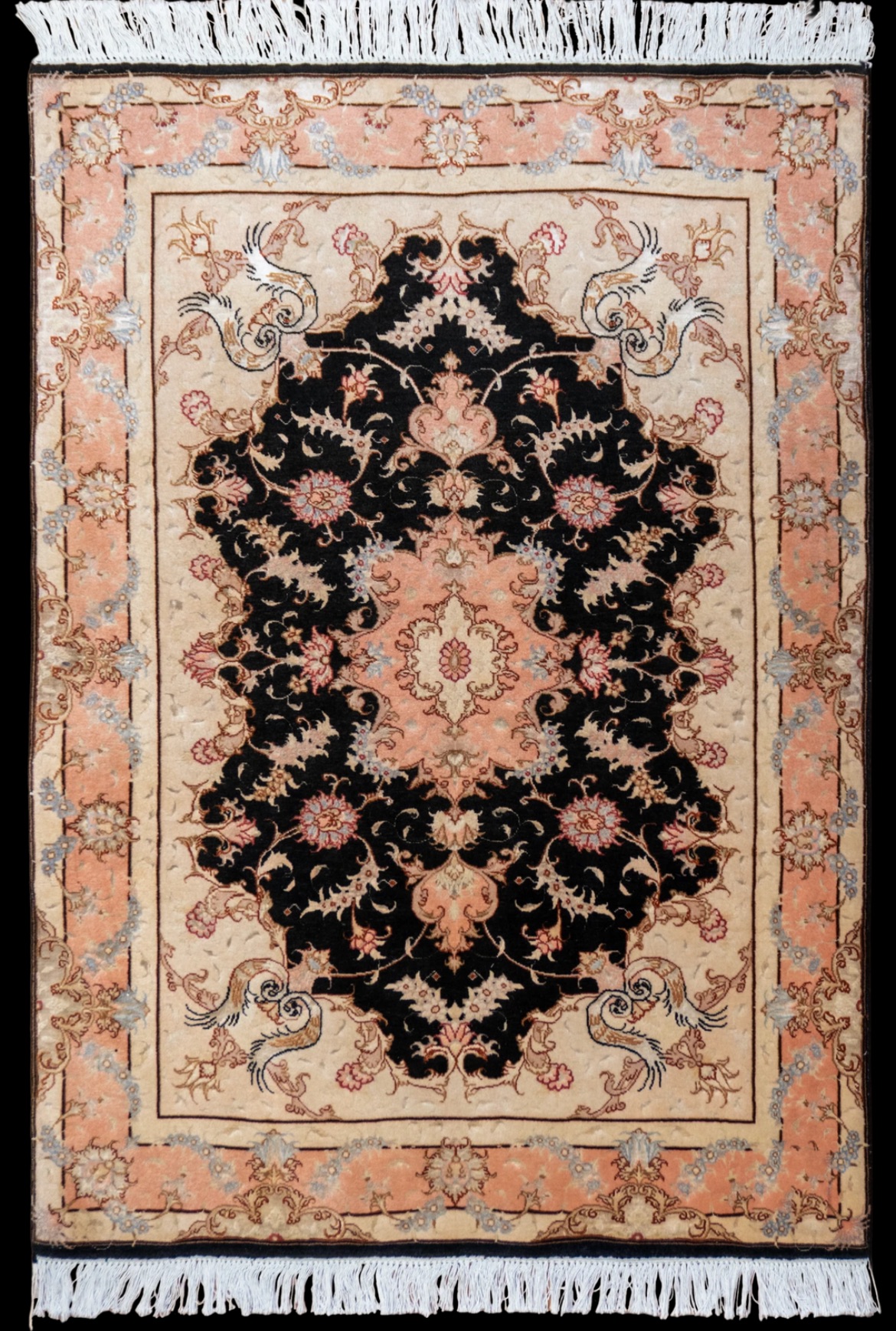 Tabriz wool & silk in black & Pink